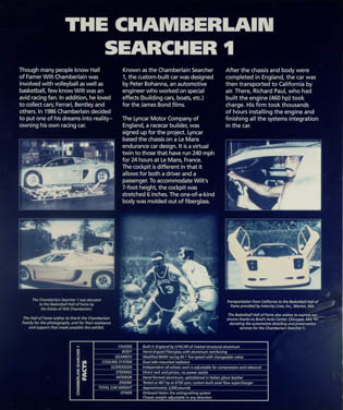 owning his own race car. Known as the Chamberlain Searcher 1,